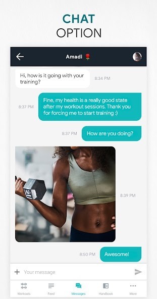 - Direct message our coaches using the built-in chat feature. Send recommendations to your friends and help them lose weight, get perfect abs, workout arms and chest, maintain a healthy diet.