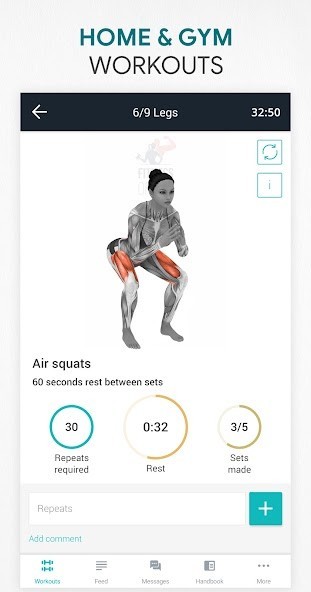 - Personal feed: Share your workouts, ask questions about exercises, meet and chat with other users of our community.