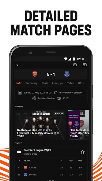 View your team’s upcoming fixtures, live table standings, news, videos and Player Stats to check top scorers and more. Perfect for Fantasy Soccer and Fantasy Football fans.
