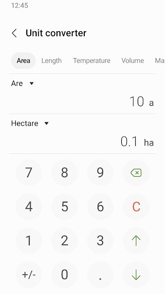 To convert units, tap the unit calculator button. You can easily convert various types of units, such as area, length, and temperature.