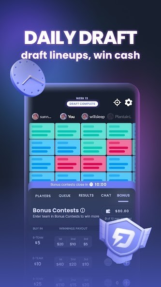 - Queue up for a lobby and draft players for a single week's upcoming games