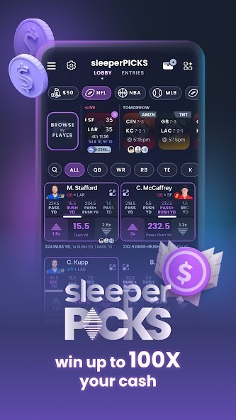 - NFL, NBA, MLB, College Football, and College Basketball, with more sports to come!