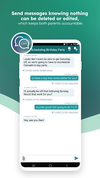 SECURE MESSAGING: co-parents can send timestamped, unalterable messages to each other, allowing them to see when each message was sent or viewed.